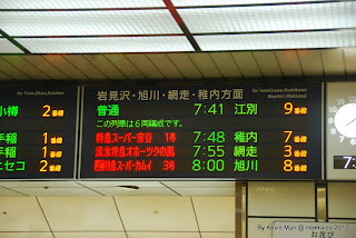 列車慢慢從札幌車站開出,離開車站列車都要走上一段路才離開市區,最終都可以離開市區,看到窗外便由一間間的屋變成了一大片的白雪舖在地上. 因為太早起來,我們要六點起床泡温泉,所以小弟便在車上小睡了一會兒. 而我就在列車上跑了一下,當然是有跑到車頭的駕駛室,看一下這列車的駕駛室. 駕駛員也不像其他的列車一樣地被困在密室一樣的駕駛至,駕駛室外只有一道矮矮的門把乘客與駕駛員分隔,乘客可以很清楚地看到駕駛室的情況,而且車前的玻璃也很大,可以很看見車前的景色及火車前進的情況,這對我來說真是很特別的.